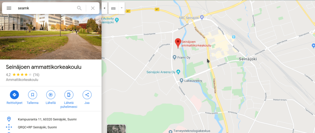Seinäjoki University of Applied Sciences (Seinäjoen ammattikorkeakoulu in finnish) is also known as SeAMK. There are about 5000 students and 10% of them are international students (as we are). It was founded in 1992 by the union of diver institutes.